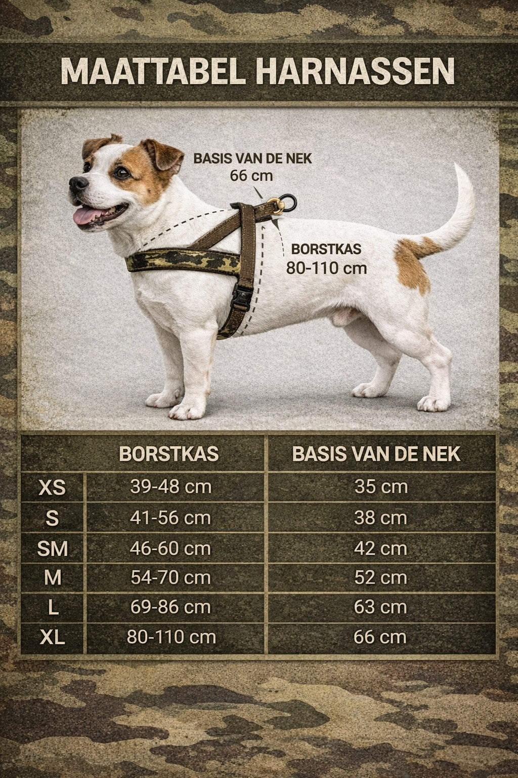 Let op de maat: meet de borstomvang van jouw hond voor aankoop. Beschikbaar van 39–48 cm tot 80–110 cm.