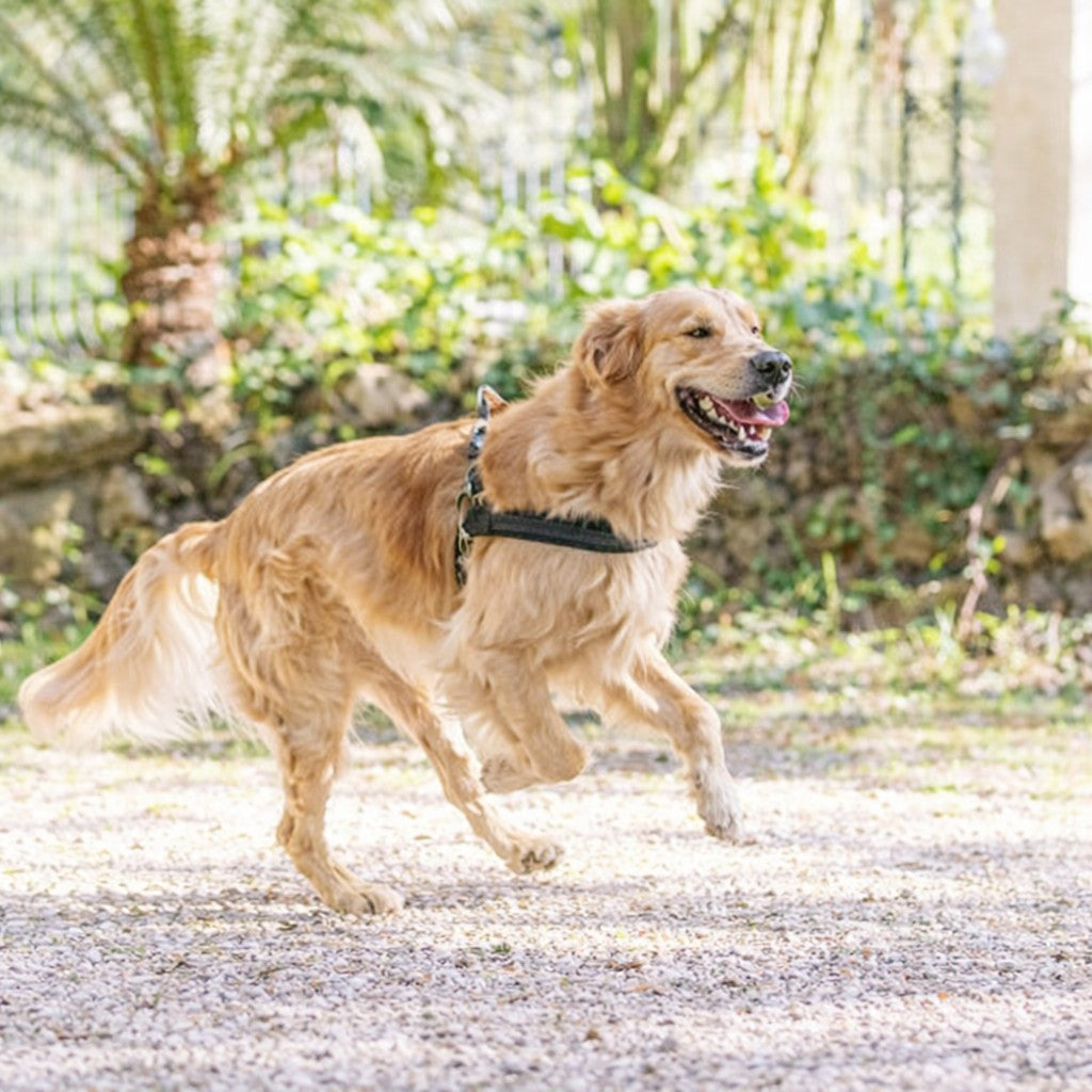 Stijlvol en duurzaam hondentuig van gerecyclede PET-flessen, met borststuk van wetsuit materiaal (MFLEX neopreen) voor optimaal comfort.